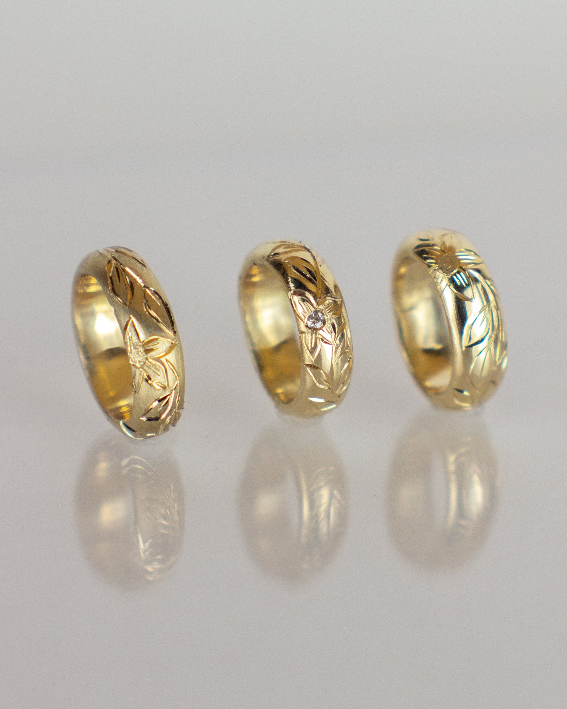 - For diamond options: 3 flush set 1mm F+ VS1 natural diamonds.